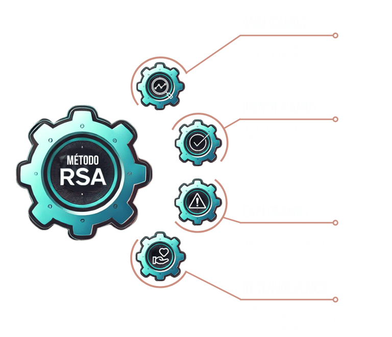 O método RSA tem uma abordagem estratégica desenvolvida para entender profundamente as necessidades do seu negócio e oferecer soluções personalizadas e eficazes.